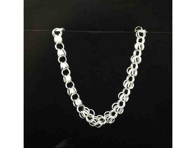Heavy sterling necklace has 3 silver rings per link. The 24" chain is made up of over 100 Half-inch links. Outstanding presentation with any outfit.