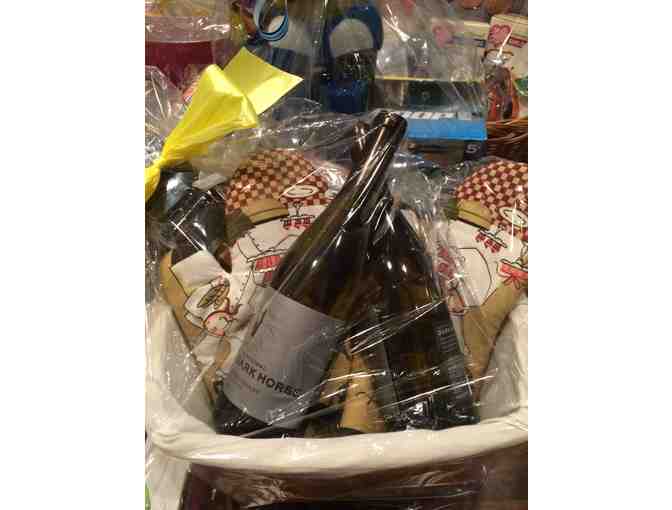 One BBQ Grill Tool Set, 2 pot holders, 2 oven mitts, 2 bottles Dark Horse Chardonnay