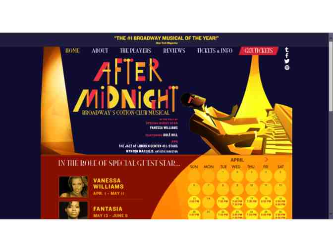 After Midnight is a heart-pounding new Broadway musical that brings the sexy, smoky glamour of Harlem's Golden Age to a whole new generation. Welcome back to that electrifying time when The Cotton Club was the place to be. This new smash-hit musical combines the big-band songs of Duke Ellington and the best dancing in town. A company of New York's best singers, dancers and tappers join forces with The Jazz at Lincoln Center All-Stars, a 17-piece band created by jazz great Wynton Marsalis.