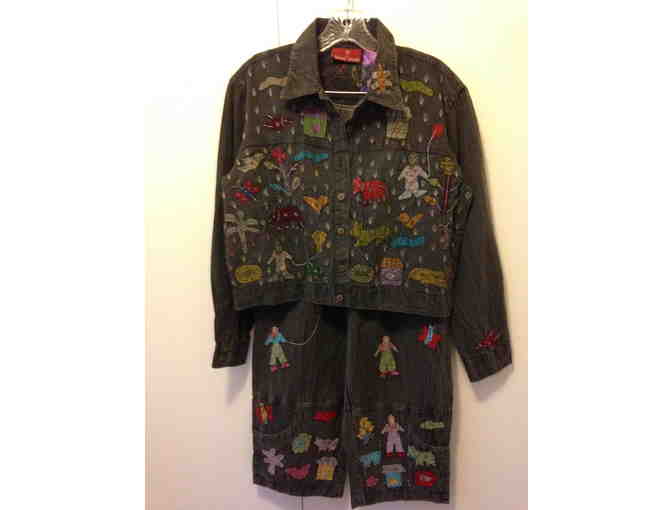 Sacred Threads, homespun cotton shirt and pants adorned with primitive hand sewn applique.