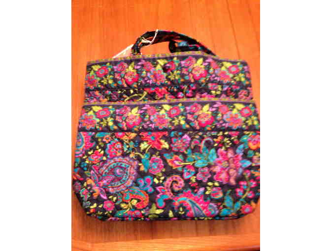 The vibrant colors of this magnificent quilted tote are highlighted in the quilting. Two external and three internal pockets make this bag a favorite for toting all your necessities.