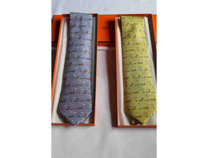 Pair of Hermes Silk Ties - Fox and Hen Collection