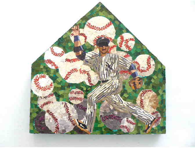 Eular Davis created another beautiful and intricate collage for us this year. It is made from magazine pages, then completed with a glaze to give it balance. The subject is of a player dreaming of making a fantastic catch.
