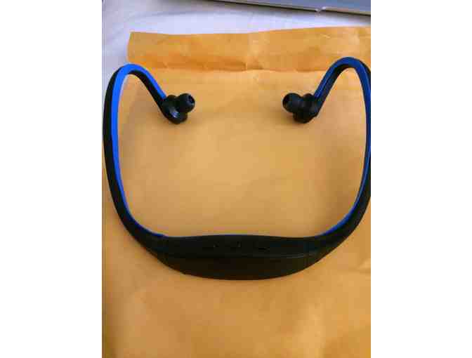 The lightweight, wrap-around headband. The headset features a Bluetooth range of up to 33 feet, and you can use the buttons to pause and play music and even answer phone calls. Enjoy up to six hours of use on each charge of the lithium ion battery.