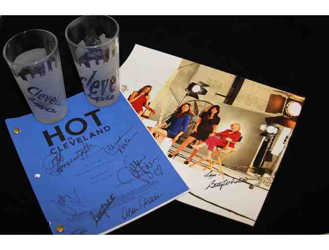 Fans of the show Hot in Cleveland will adore this package! It contains a full-color picture of the women in the cast of this TV Land show, signed by Betty White. Additionally, a script of a shooting draft of Episode #404 (used on 9/26/2012) has been signed by the entire cast. Two tumblers with “Cleveland” and the city's skyline etched in the glass are also included; these are also signed by Betty White. What a neat addition to your bar area, home theatre, or man cave!