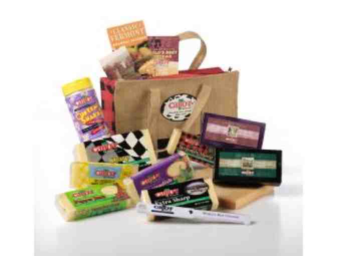 This Cabot-logoed tote has a tan front and back, red and black checkered sides, and a zipper top. Best of all, it comes chock full with enough variety to delight even the most serious cheese lover. Package includes: 8oz Seriously Sharp Dairy Bar, 8oz Pepper Jack Dairy Bar, 8oz Sharp Light Dairy Bar, 8oz Extra Sharp Dairy Bar, 8oz Horseradish Dairy Bar, 1lb Private Stock, 1lb Vintage Choice, 2lb Sharp, Cheddar Shake, Burlap & Plaid Bag, Thick & Thin Slicer, and a Wooden Cutting Board.