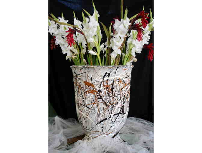 Inspired by Pollock's Autumn Rhythm, Preschool students from both classes tried their hand at Pollock's splatter and drip technique to decorate this large ceramic vase. The children chose to use a palette of black, white, cream and brown for this piece.