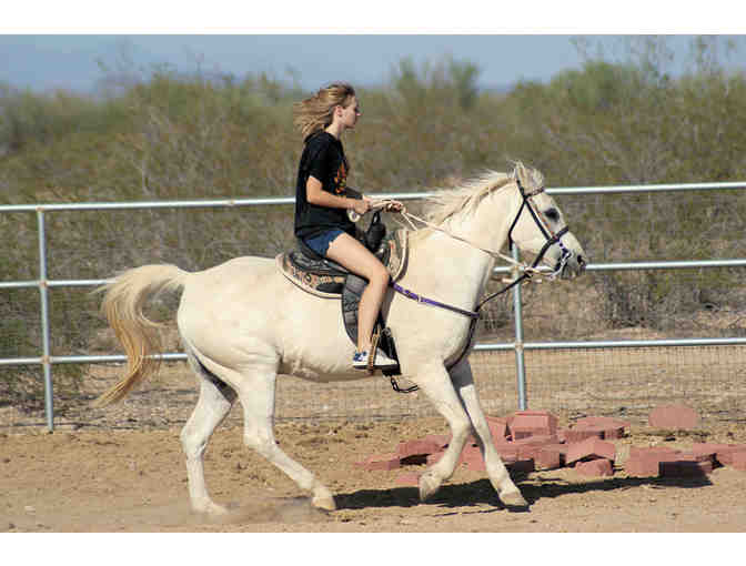 Four horseback riding lessons for one individual over 6 years of age. Learn basic horse care including grooming, tacking, as well as direct rein natural horsemanship.