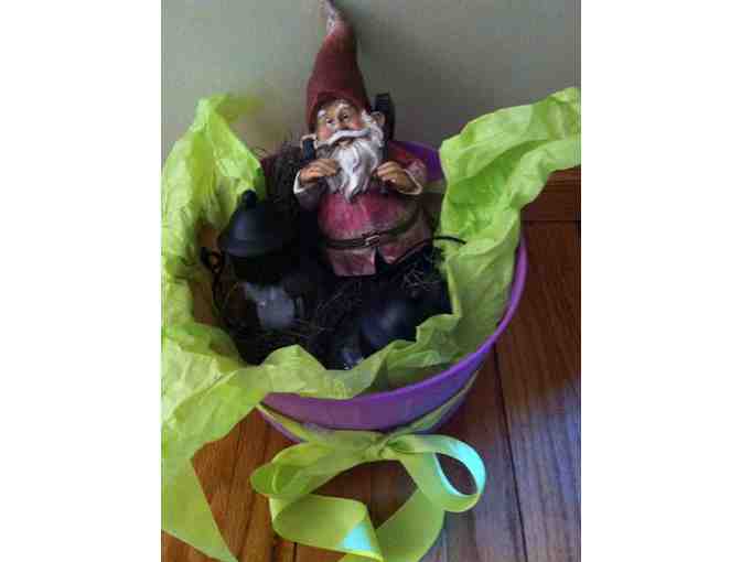 Includes garden gnome and 2 wickless candles with lantern holders.