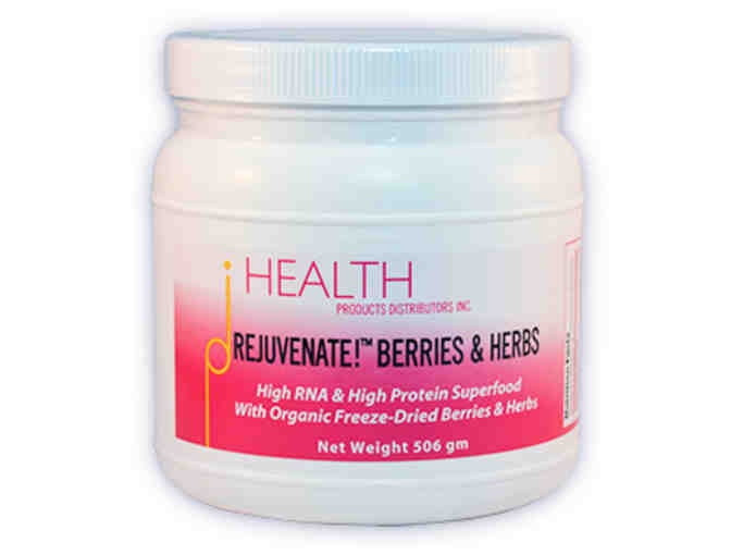 REJUVENATE!¿ BERRIES & HERBS is a delicious, high-RNA and high-protein superfood that includes organic freeze-dried blueberries, cranberries, raspberries, and strawberries. It also includes a complete cell-protective blend of organic and wildcrafted herbs and antioxidants. This formula does not contain any ¿green foods¿ yet provides therapeutically high levels of RNA (primarily from nutritional yeast and RNA extracts of nutritional yeast). It is widely considered to be the best-tasting superfood among Rejuvenate! superfoods.