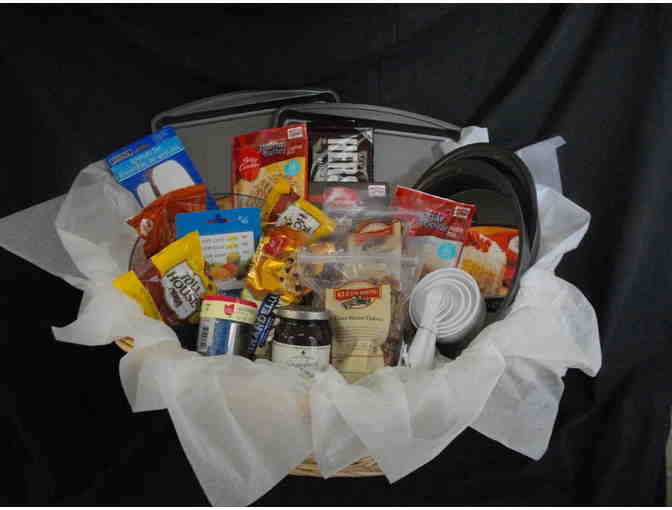 If you love to bake, this is the basket for you! Two baking sheets, two round cake tins, mixing bowl with measuring cups, measuring spoons, two non-stick cookie sheets, two round cake tins, a variety of baking spatulas and more morsels than you can count! Also comes with brownie and cookie mixes, Texas pecans, Hersey's chocolate and sprinkles for decorating. If that's not enough, there is $45 in Kroger gift cards to expand your baking desires.
