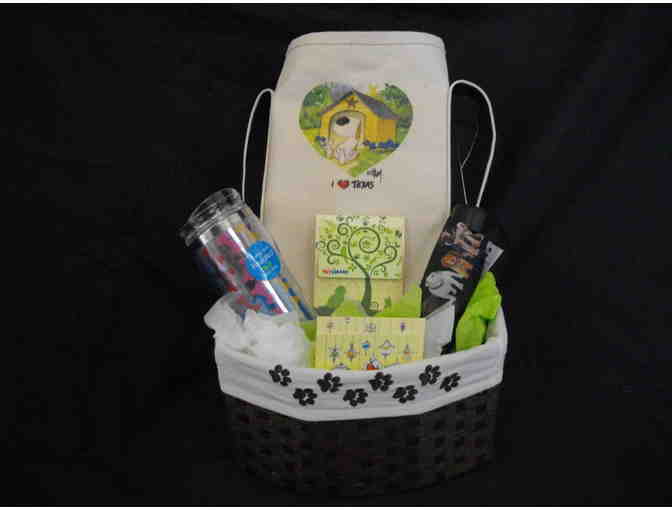 This basket contains a Dogs All Around umbrella, a colorful bone printed double-wall insulated cup and $90 in PetSmart gift cards. Rain or shine you can walk your furry loved ones in style while sipping your favorite beverage and shopping for the next great toy for them.