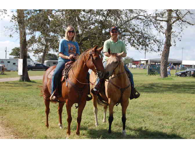 You are bidding on a Deluxe Package for the 2014 SIRE Walk-Run-Ride-a-thon on October 18th at 7il Ranch in Cat Spring. Your Deluxe package includes; two trail ride tickets, BBQ lunch with reserved seating, carnival entry and two t-shirts. The basket also has everything you need to add style and comfort to your horse and ride. By Cashel you have a water bottle holder, saddle padding, brown cantle bag, saddle pouches, deluxe grazing muzzle and muzzle mate.