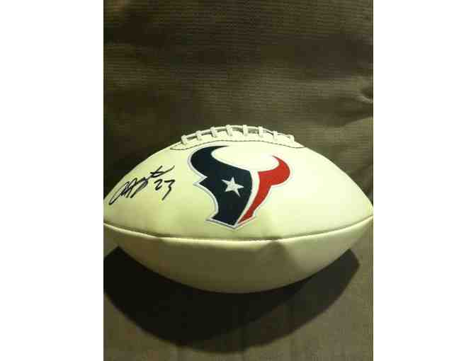 Signed football in case from this Houston Texan All Pro running back.