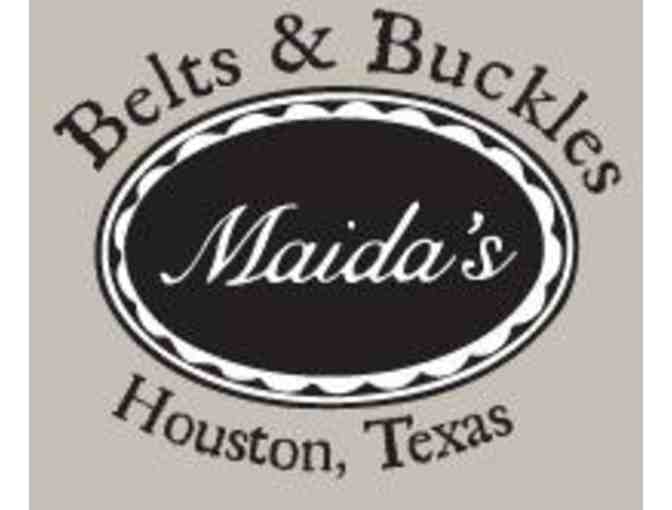 One handmade French calf skin belt from Maida's Belts & Buckles located off of Westheimer Road and Chimney Rock. Expires 5/3/2015.