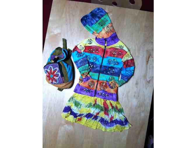 Girls Skirt SZ 4-6 , handmade Jacket from Nepal, backpack
