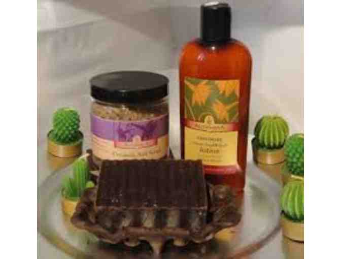 Olive oil soap, beer soap, love bath salt, muscle ease and uplifting inhaler and 50% off a 1 year membership.