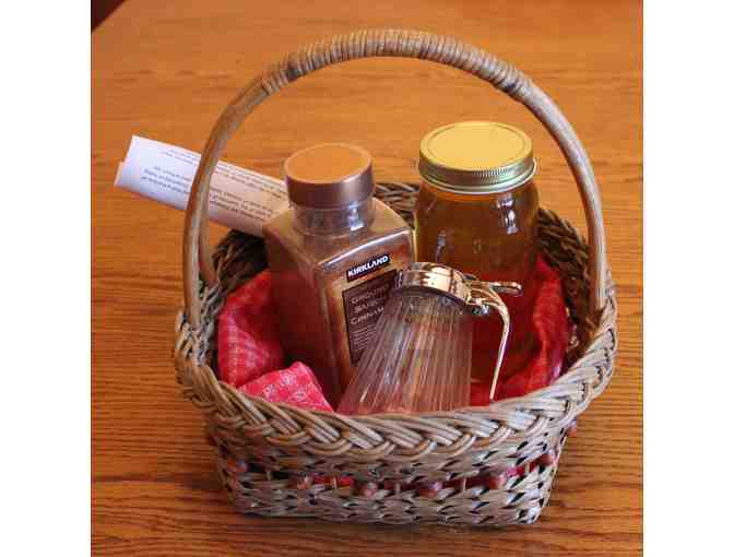 Fresh Eden Prairie honey, with some cinnamon, and a dispenser. A list of ideas of what to use the 2 for is also included!