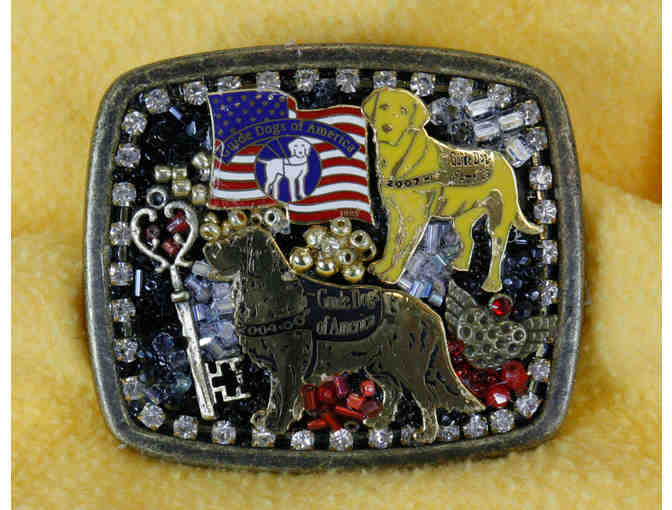 Our very own Grace Cohan created this beautiful belt buckle. It's decorated with GDA lapel pins from the past and lots of sparkle.