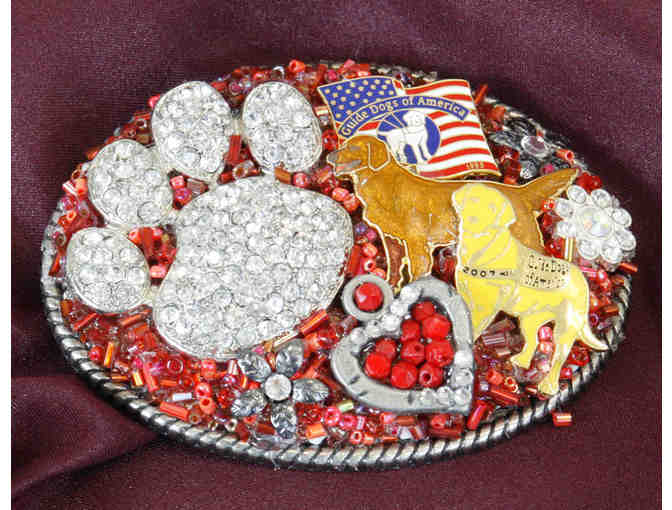 Our very own Grace Cohan created this beautiful belt buckle. It's decorated with GDA lapel pins from the past and lots of sparkle.