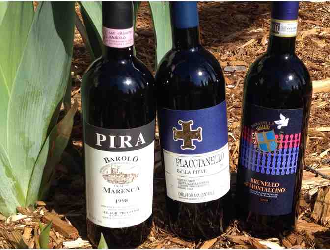 Love interesting Italian reds? Here's an opportunity to try three great ones! In this package you will get a 2008 bottle of Donatella Cinelli Colomobini's Brunello di Montalcino (retail $55), a 1998 bottle of Luigi Para's Barolo Marenca (retail $80) and a 2001 bottle of Fontodi Flaccianello Della Pieve (retail $200). These are all highly rated wines that are harder to come by in the US. Don't miss this chance to feel like you're in Tuscany in your own home!