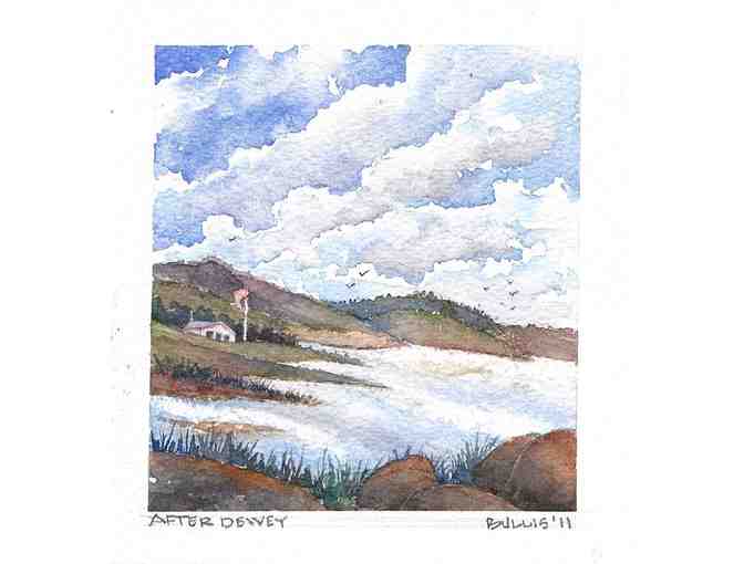 This is a demo painting for a watercolor class at UTA taught by Bob Bullis, AIA in 2011. After Dewey was a credit to class textbook "The Watercolor Book" by David Dewey. 5 1/2" x 5"