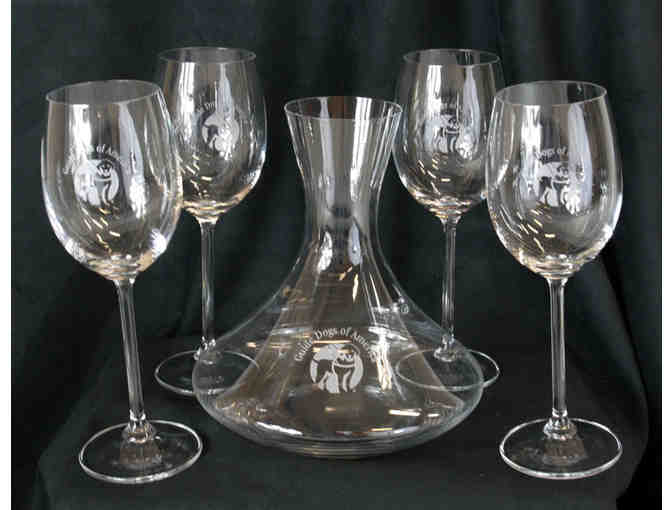 Stunning decanter and four wine glasses all etched with the GDA logo.