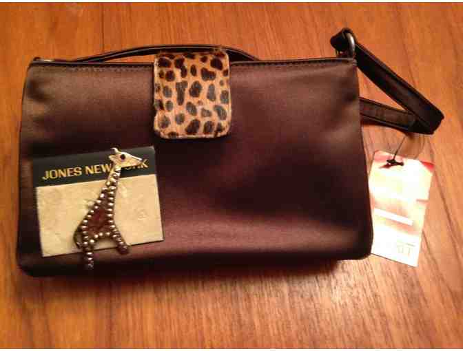 The dark brown shiny fabric Esprit clutch is 8 X 12 inches.