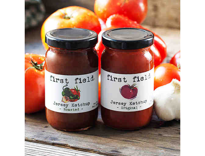 New Jersey is known for having the most delicious tomatoes so it stands to reason that locally grown tomatoes would make the best ketchup! Bid on 12 jars (8 oz. each) of First Field ketchup, a favorite among locals. Included are 6 jars of original ketchup and 6 jars of roasted tomato ketchup, a variety that until recently, was only available at First Field’s farm stand and a few select stores. Roasted tomato ketchup is still made with all N.J. tomatoes, but blended with fresh roasted poblanos, red peppers, onions, and garlic. Spicier and more robust, it is sold in the same 8oz. jar as the original flavor, with its very own beautiful artwork on the label.
