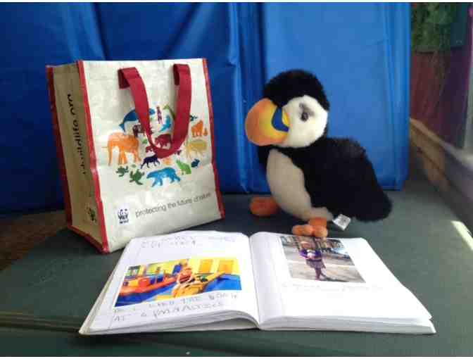 This feathered friend has been on many adventures this year with each member of the Puffins class Bring him home with his bag and his travelog book for a lifetime of more adventures!