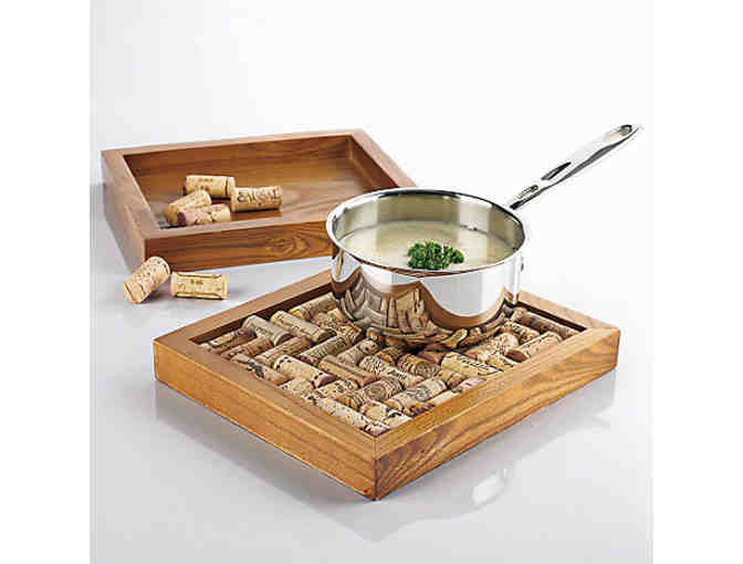 Pop those wine corks...and create a wine cork trivet. Enjoy this popular product, since half the fun is in the making! The wine cork trivet made in mahogany wood protects surfaces from hot pots while displaying corks from your favorite wines. Simply supply the wine corks and create a fun memento!