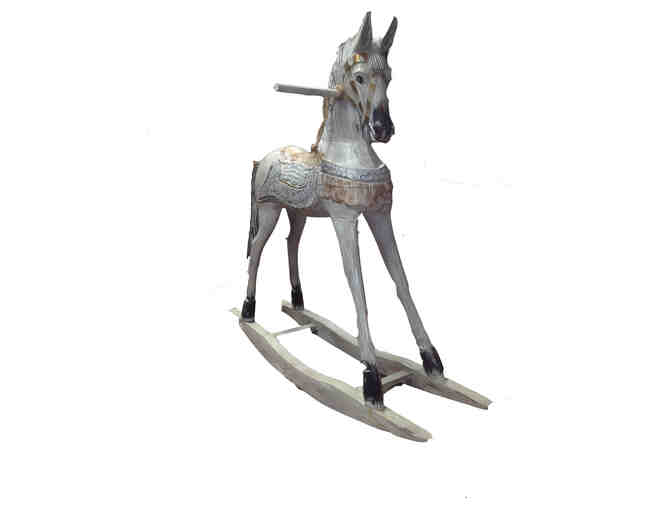 This beautiful painted wooden rocking horse stands at approximatly 9 hands tall and would compliment any room.