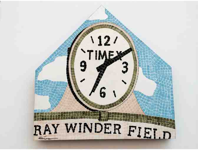 Ray Winder Field, the home of the Arkansas Travelers for decades, is brought to life by the mosaic-like painting of Mike Gaines.