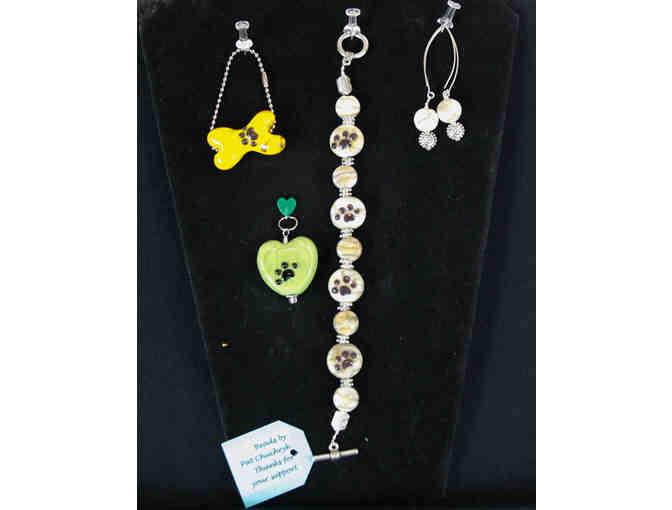 Pawprint jewelry lovingly made in glass by Patricia Chuchryk. Set includes: