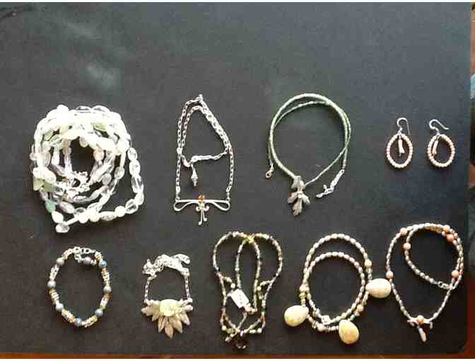 Handcast Maple and Elm leaves, sterling silver, golden beryl