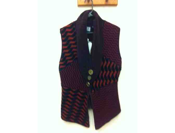 This is a soft, cozy, beautiful red and black Zimmer vest. Size Large. It adds an elegant to touch to any outfit.