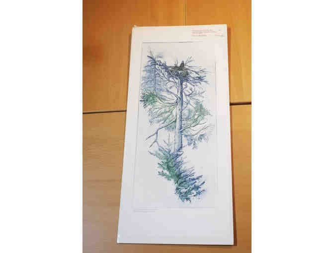 This lovely zinc etching'North Douglas Nestling" is from local artist, Dianne Anderson is #12/50 of this limited edition piece. 23" long X 10. 25" w with backing.