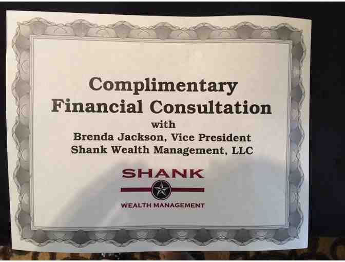 Certificate for one hour of complimentary financial analysis consultation from Brenda Jackson.