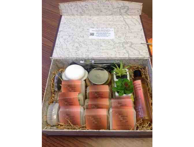 Enjoy luxurious, handcrafted bath and body items made with a fine selection of nature-based elements from Urban Essence Salon & Spa. Most products are shea butter-based. Includes soaps, bath and shower gel, body scrubs, pedicure aids, and an eye mask.