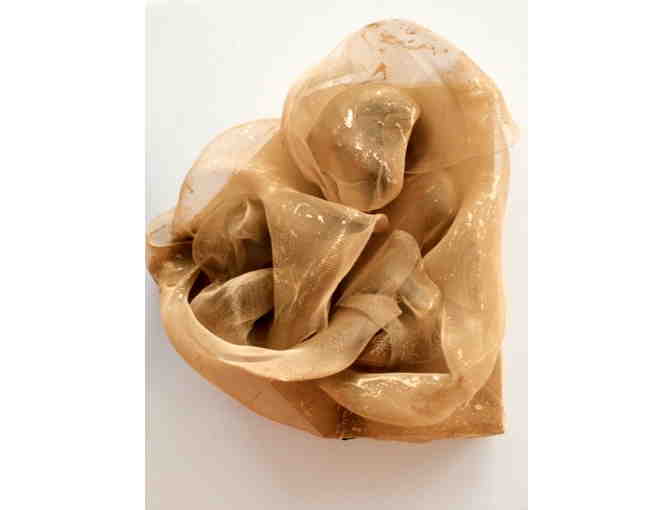 Lydia made her home plate flower in daffoldil yellow from wire window screen. In 2011, her original FLOWERS BLOOM was in rose red.