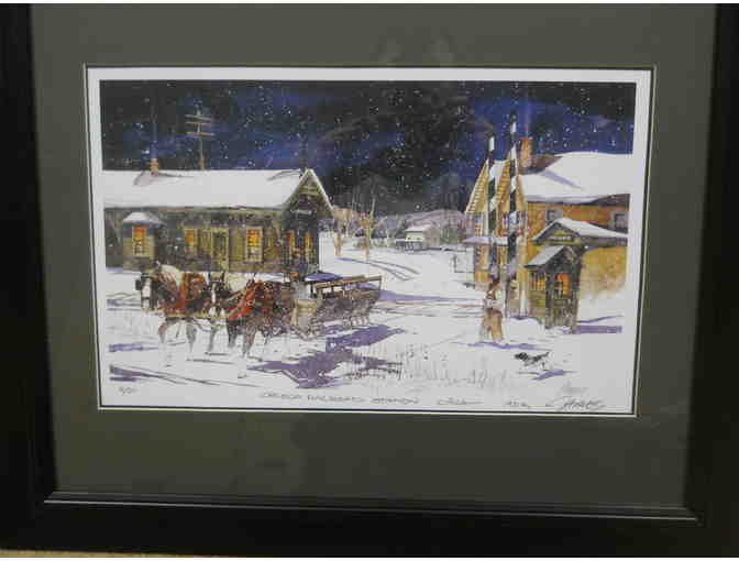 Cresco Railroad Station circa 1903 (size 10 by 16 inches) with mat and glass-enclosed frame (20 by 24 inches