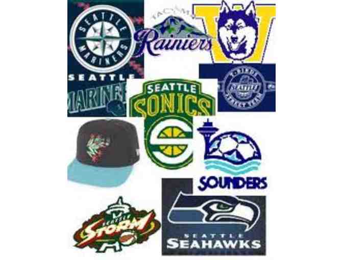 A great sports fan package that includes four upper box seats for an Aqua Sox Game, Four tickets to a Seattle Storm game,  four premium reserved seats for a Thunderbirds game for the 2014/2015 and two tickets to and FC Sounders game.  It also includes memorabilia from the FC Sounders and Seattle Seahawks Storm Youth t-shirt;  Seahawk's memorabilia and signed mariners cards. Don't want to forget the Huskies Hat.