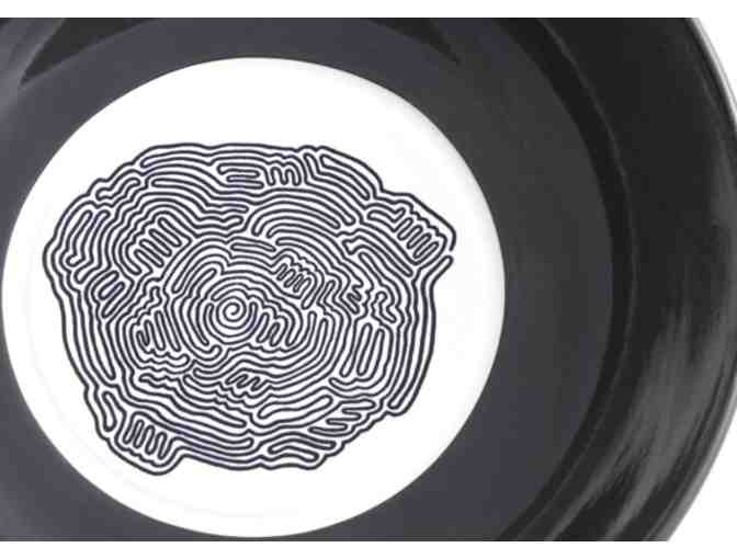 - Hand crafted original fingerprint Maze Bowl in black, white, and charcoal grey