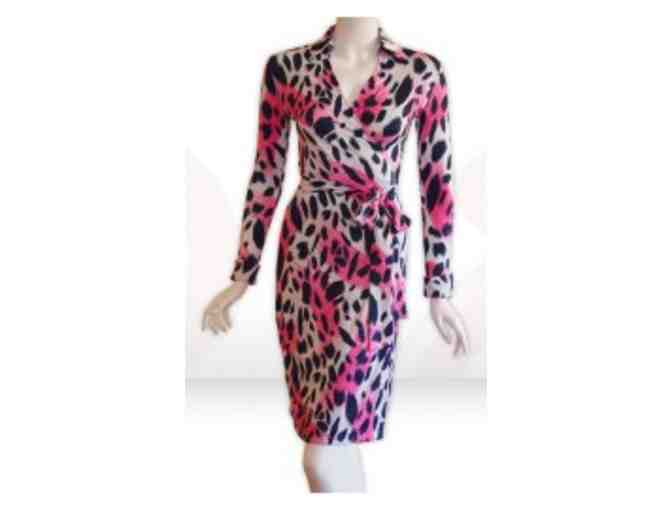 Pink/Navy leopard print long sleeve wrap dress Women's Size SMALL