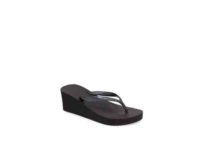 Havaiana Black Wedge Flip Flop (Women's Size 7/8 and Lavendar Mint Hand & Foot Care Set including refreshing soak, smoothing scrub, pumice stone, and moisturizing cream