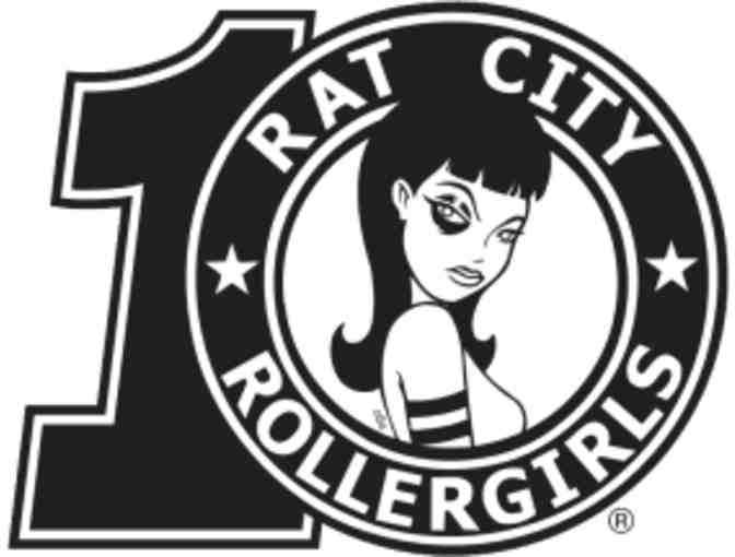 Two tickets to the Rat City Roller girls along with some great Rat City Roller Girls Swag! It includes a shirt, ball, key chain, pint glass, bell, bandana, a patch and a bag!