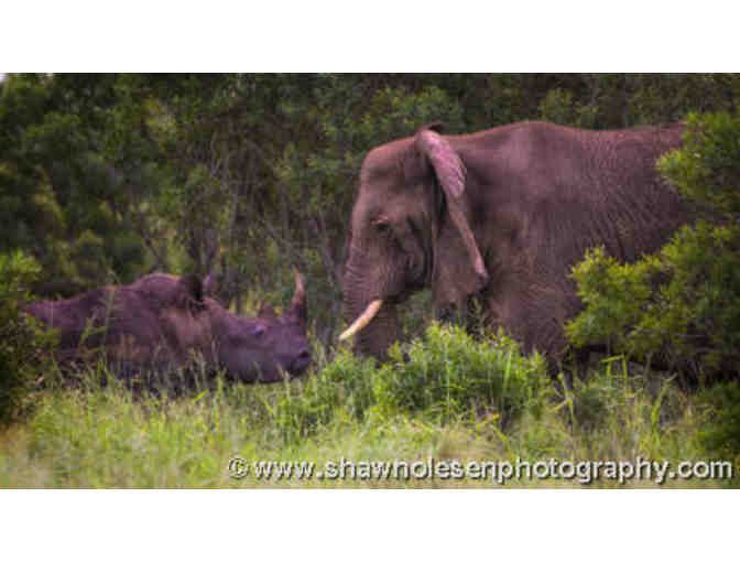 Photo Safari for two in South Africa. Experience the magic of Africa! A tantalizing taste of the wild in the heart of Africa’s richest conservation regions situated in Zululand, South Africa. Experience elephant, rhino, leopard, giraffe, hippo, zebra, nyala, cape buffalo, kudo and many more plains game. “I Dreamed of Africa” starring Kim Bassinger was filmed on spot. Package includes six nights of accommodations, three meals per day and two game activities per day.