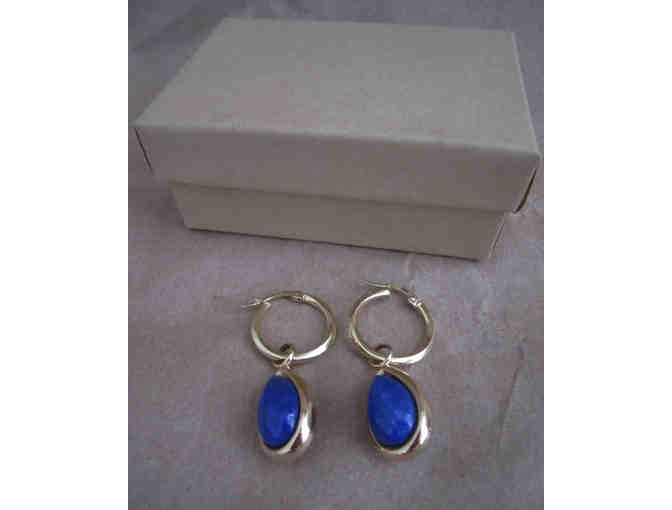 14k gold hoop earrings that can be worn plain or with reversible genuine lapis lazuli and black onyx dangles.