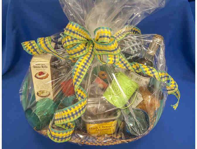 A perfect summer picnic basket for four! This colorful tub is packed with a beautiful Spanish Rioja Wine, snacks, picnic set and a CD by Southern California jazz group "Bangkok Blue."