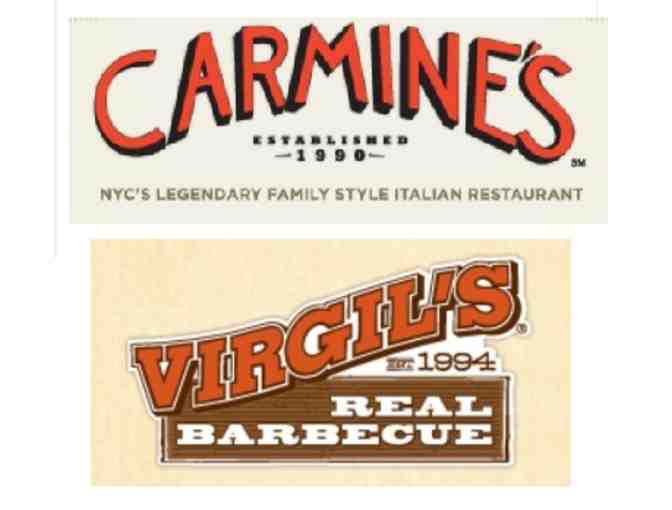 $100 Gift Certificate from the Alicart Restaurant Group good at Carmine's Italian Restaurant Locations in NYC, AC, DC, or Vegas! OR Virgil's Real Barbecue in NYC!